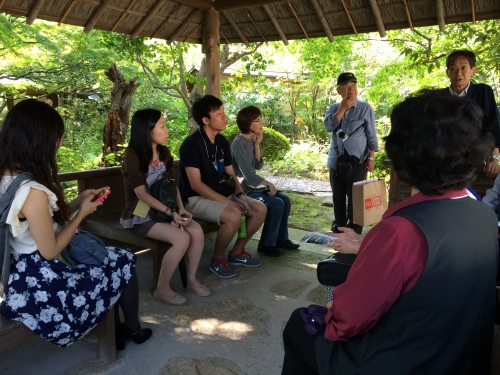 第3回目は、近隣にある「松風園(しょうふうえん)」という日本庭園風の公園にお出かけし、抹茶をいただきつつ、平尾の歴史に精通された方にお話をお聞きしました。